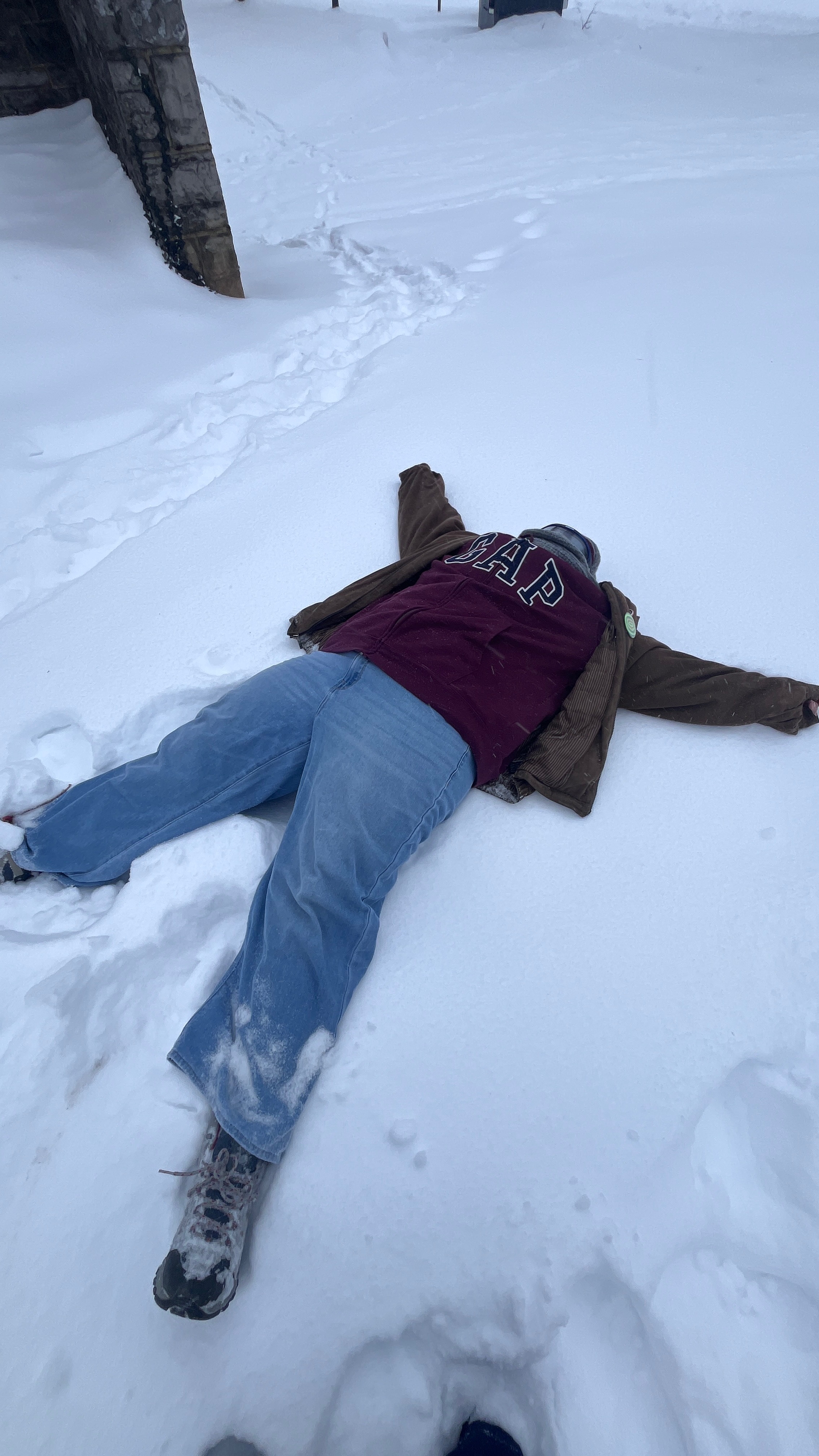 next, i layered up and went outside. it was such beautiful snow and i looked ridiculous because i was wearing my lab goggles to keep warm. maybe i'll attach photos at the end but we'll see how i'm feeling. we went sledding using the tops of my plastic packing buckets. we also rolled down a hill and did some minor snowball fighting. that was for around two hours of just fucking around in the snow. eventually my roommate and i made the decision to trudge over to our friends' apartment and then just bang on their window and hope they let us in. the snow here was around 2 feet, which was more than i ever remembered experiencing. by the time we made it to the apartment, my pants were literally frozen solid. like i felt like anna in that scene in frozen when her skirt completely freezes.